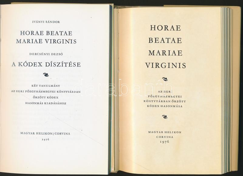 Horae Beatae Mariae Virginis - az egri főegyházmegyei könyvtárban őrzött kódex hasonmása hozzá tartózó tanulmánnyal, Magyar Helikon Corvina Kiadó, Bp. 1976., védőtokkal