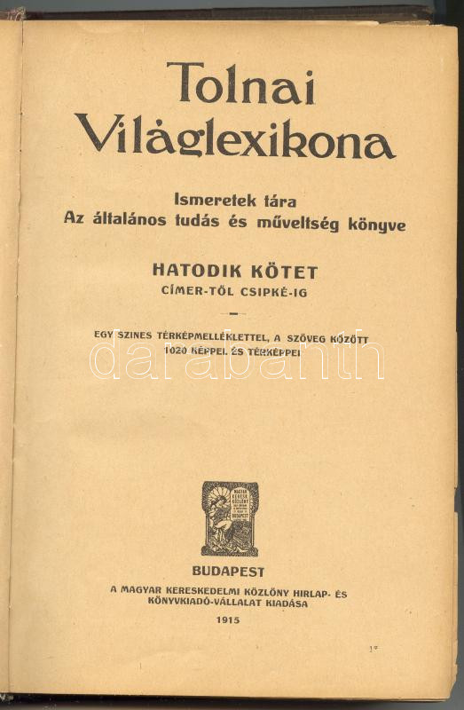Tolnai Világlexikona VI. kötete, Magyar Ker. Közlöny HÃrlap és könyvki... https://www.darabanth.com/de/164-Fernauktion/164.0/Andere-Sammelgebiete/Bucher-Sonstige-Raritaten~500037/Tolnai-Vilaglexikona-VI-kotete-Magyar-Ker-Kozlony-Hirlap-es-konyvkiado-Vallalat-kiadasa~II539121