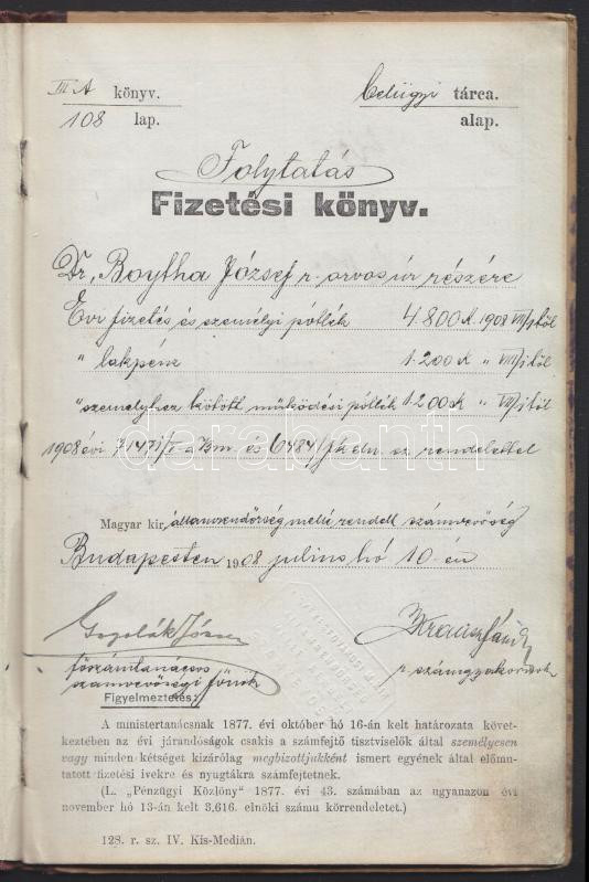 1908 Orvosi fizetési könyv https://www.darabanth.com/de/164-Fernauktion/164.0/Andere-Sammelgebiete/Dokument~500015/1908-Orvosi-fizetesi-konyv~II537662
