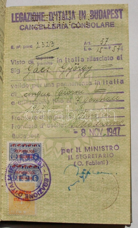 1947-1948 Fényképes magyar útlevél sok európai országbeli vízummal https://www.darabanth.com/de/164-Fernauktion/164.0/Andere-Sammelgebiete/Dokument~500015/1947-1948-Fenykepes-magyar-utlevel-sok-europai-orszagbeli-vizummal~II541312