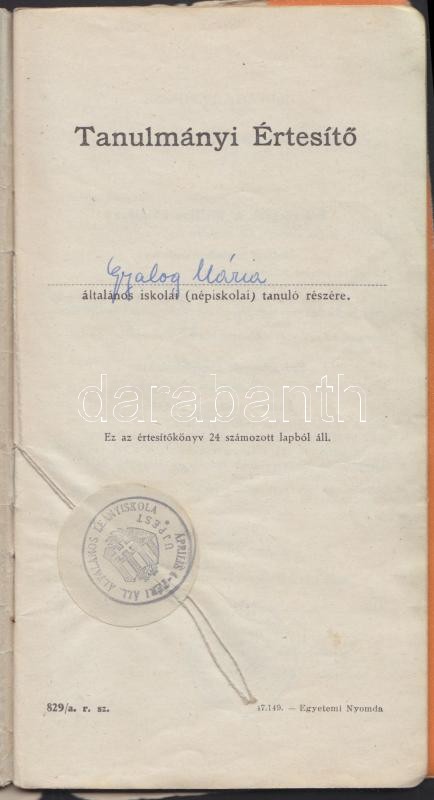 1947 Tanulmányi értesítő propaganda borítással https://www.darabanth.com/de/164-Fernauktion/164.0/Andere-Sammelgebiete/Dokument~500015/1947-Tanulmanyi-ertesito-propaganda-boritassal~II541133