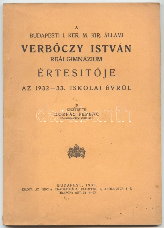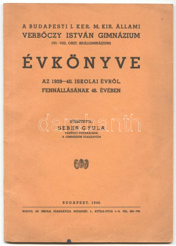 1932/1939 A budapesti Verbőczy István Gimnázium 2db évkönyve https://www.darabanth.com/de/164-Fernauktion/164.0/Andere-Sammelgebiete/Drucksachen~500026/19321939-A-budapesti-Verboczy-Istvan-Gimnazium-2db-evkonyve~II537065