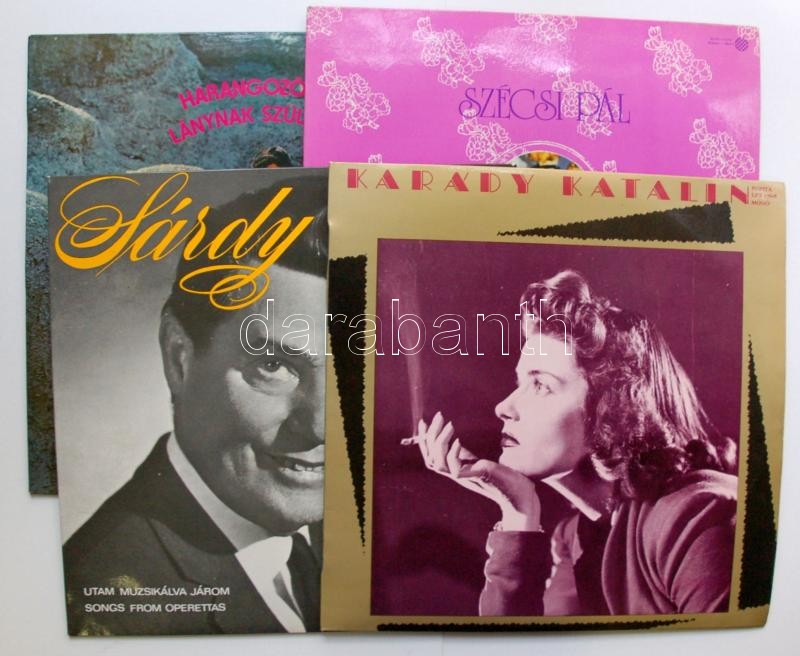 43db 33-as és 6db 45-ös bakelit lemez főleg 60-70-es évekbeli magyar előadókkal (Koncz Zsuzsa, Katona Klári, Korda György, Szécsi Pál, Karády Katalin stb.) és magyar népzenével /