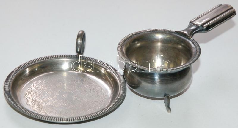 Silver plated teafilter with plate 11x4cm, d: 9cm