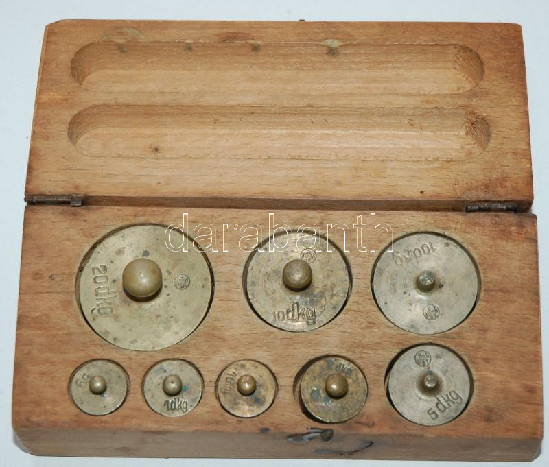 Régi súlykészlet rézből, eredeti fadobozában (legnehezebb súly 20dkg) https://www.darabanth.com/de/164-Fernauktion/164.0/Andere-Sammelgebiete/Flohmarkt~500012/Regi-sulykeszlet-rezbol-eredeti-fadobozaban-legnehezebb-suly-20dkg~II535945