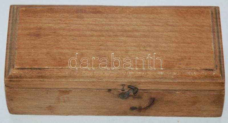 Beschreibung: Régi súlykészlet rézből, eredeti fadobozában (legnehezebb súly 20dkg)