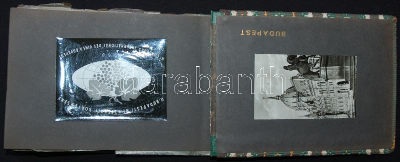cca 1960 2db szignált budapesti városi fotó: a Szépművészeti Múzeumról és a Vajdahunyadvárról 36x30cm, valamint egy fotóalbum (16x25cm) az 1960-as II. Budapesti Nemzetközi Borverseny képeivel, 22db fekete-fehér fotóval