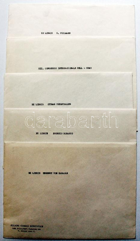Beschreibung: 5 db jelzett ex libris, közte Herbert von Karajané, fametszet, papír.
