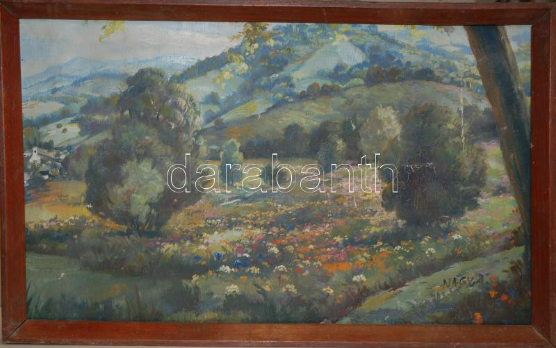 Beschreibung: Nagy J. jelzéssel: Virágos domboldal, olaj-vászon, keretben 60x38cm