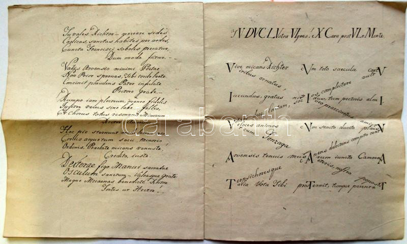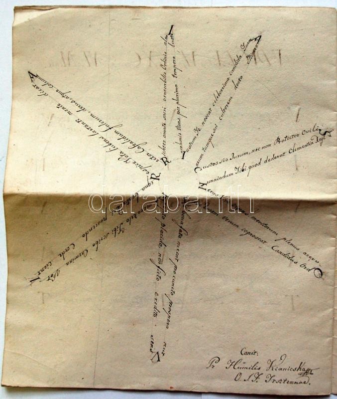 Beschreibung: Onomasticon quod illustrissimo reverendissimo... Aloysio Richter.... című kézzel írott, latin nyelvű, kaligrammát tartalmazó kézirat 10 beírt oldallal.