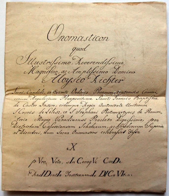Onomasticon quod illustrissimo reverendissimo... Aloysio Richter.... c... https://www.darabanth.com/de/164-Fernauktion/164.0/Andere-Sammelgebiete/Historische-Dokumenten-Handschriften~500016/Onomasticon-quod-illustrissimo-reverendissimo-Aloysio-Richter-cimu-kezzel-irott-latin-ny~II539138