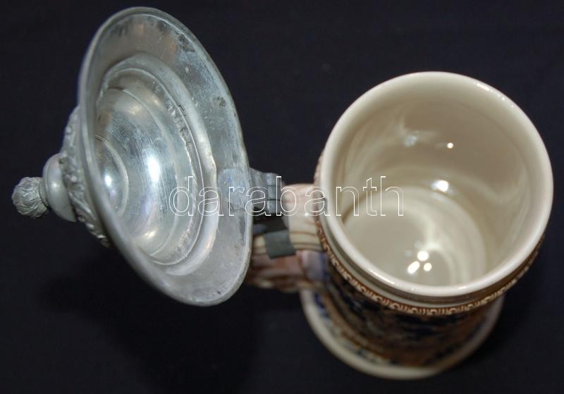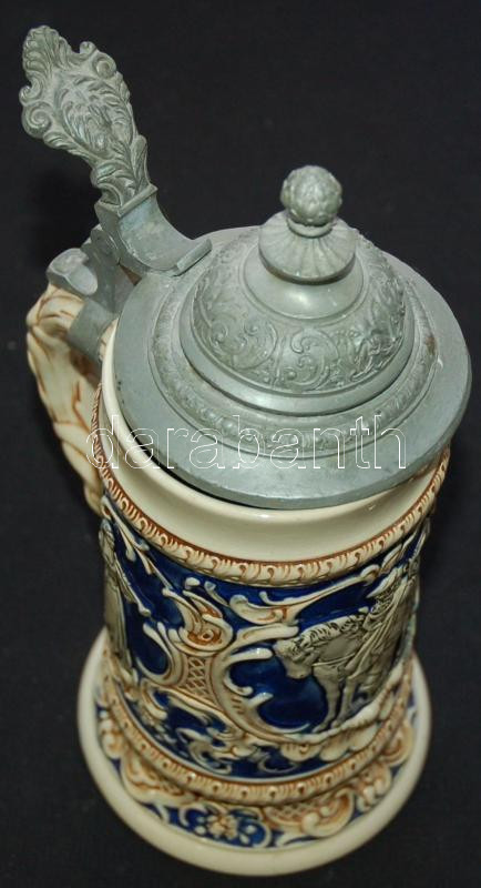 Festett mázas ónfedelű söröskupa (a száján kis lepattogzás) /