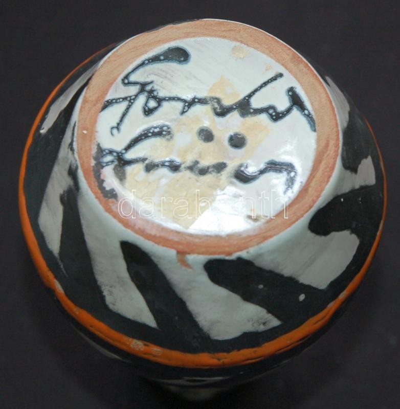 Beschreibung: Jelzett Gorka Lívia mázas kerámia váza (apró sérülés a mázon) /