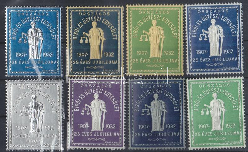 Beschreibung: 1932 Országos Bírói és Ügyészi Egyesület 8db klf színű dombornyomott levélzáró bélyege