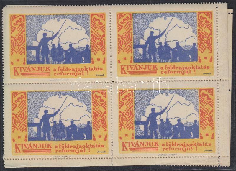 Beschreibung: ~1920 2db irredenta levélzáró négyestömb - Kívánjuk a földrajzoktatás reformját!