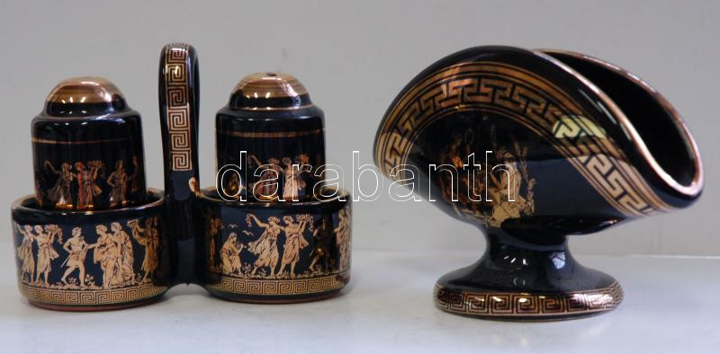 24K arannyal festett görög porcelán szalvéta- és sótartó /