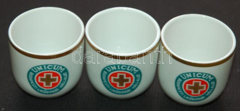 Beschreibung: 3db jelzett Hollóházi porcelán Unicumos pohár aranyozott peremmel /