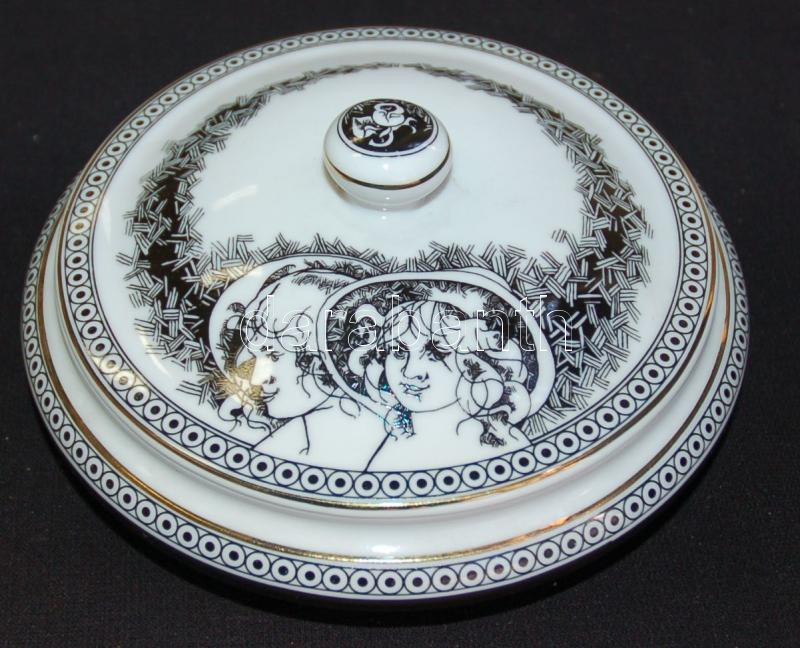 Szász Endre által tervezett Hollóházi porcelán bonbonnier /