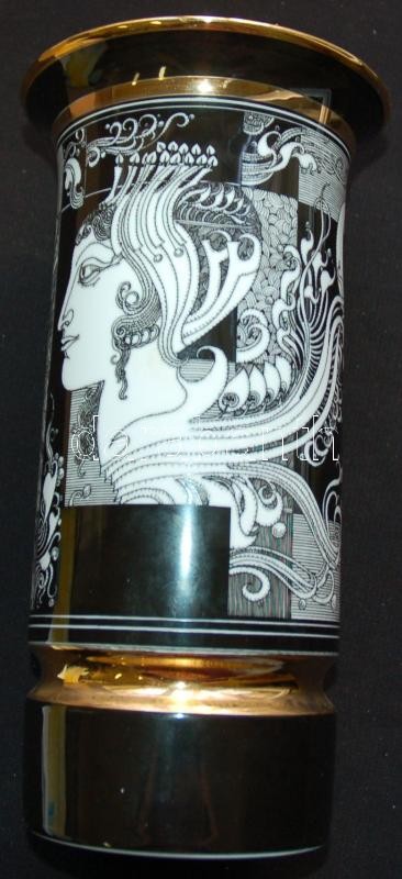 Szász Endre által tervezett aranyozott jelzett Hollóházi porcelán váza... https://www.darabanth.com/de/164-Fernauktion/164.0/Andere-Sammelgebiete/Porzellan~500008/Szasz-Endre-altal-tervezett-aranyozott-jelzett-Hollohazi-porcelan-vaza-arcok-sorozat-Faces-~II536516