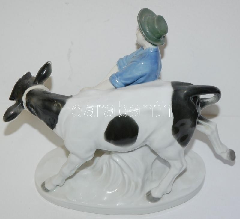 Tehenet kísérő fiút ábrázoló kézzel festett német porcelán figura hibátlan állapotban /