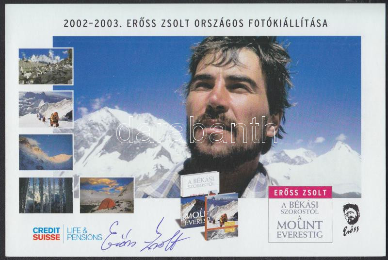 Beschreibung: Erőss Zsolt erdélyi születésű hegymászó, aki első magyar állampolgárként mászta meg a Mount Everestet aláírása képeslapon