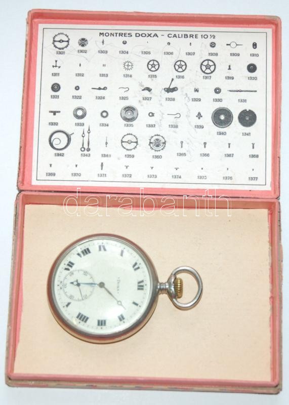 cca 1900 Doxa zsebóra porcelán számlappal, másodpercmutatóval saját dobozában (a számlap kicsit sérült) /