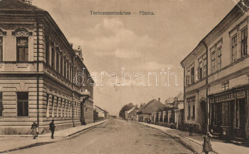 Turócszentmárton main street with the shop of Schwarz (EK) https://www.darabanth.com/de/164-Fernauktion/164.0/Ansichtskarten/Slowakei~2000007/Turocszentmarton-main-street-with-the-shop-of-Schwarz-EK~II541585