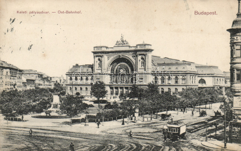 Budapest VII. Keleti pályaudvar, villamos https://www.darabanth.com/de/164-Fernauktion/164.0/Ansichtskarten/Ungarn~2000005/Budapest-VII-Keleti-palyaudvar-villamos~II515498