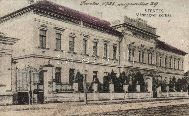 Szentes Vármegyei kórház (fa) https://www.darabanth.com/de/164-Fernauktion/164.0/Ansichtskarten/Ungarn~2000005/Szentes-Varmegyei-korhaz-fa~II535157