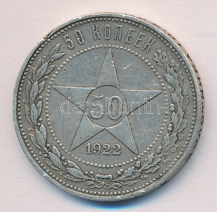 Soviet Union 1922. 50 Kopek Ag T:F https://www.darabanth.com/de/164-Fernauktion/164.0/Numismatik/Auslandische-Munzen~2000106/Szovjetunio-1922-50K-Ag-T3-3Cbr3ESoviet-Union-1922-50-Kopek-Ag-TF~II536553