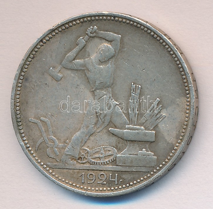 Soviet Union 1924. 50 Kopek Ag T:F https://www.darabanth.com/de/164-Fernauktion/164.0/Numismatik/Auslandische-Munzen~2000106/Szovjetunio-1924-50K-Ag-T3-3Cbr3ESoviet-Union-1924-50-Kopek-Ag-TF~II536557