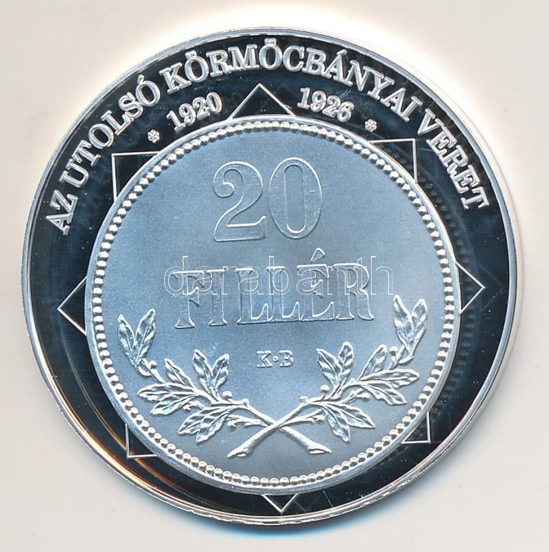 Beschreibung: DN "A magyar nemzet pénzérméi - Az utolsó körmöcbányai veret 1920-1926." Ag (0,999) emlékérem (10,37g/35mm) T:PP tanúsítvánnyal!