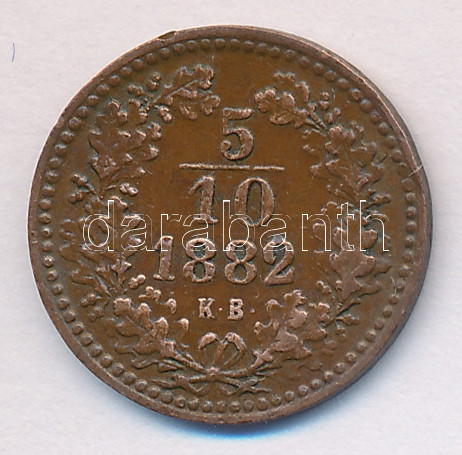 1882KB 5/10Kr "Magyar Királyi Váltó Pénz" T:2/2- https://www.darabanth.com/de/164-Fernauktion/164.0/Numismatik/Ungarische-Munzen~2000102/1882KB-510Kr-Magyar-Kiralyi-Valto-Penz-T22-~II538210