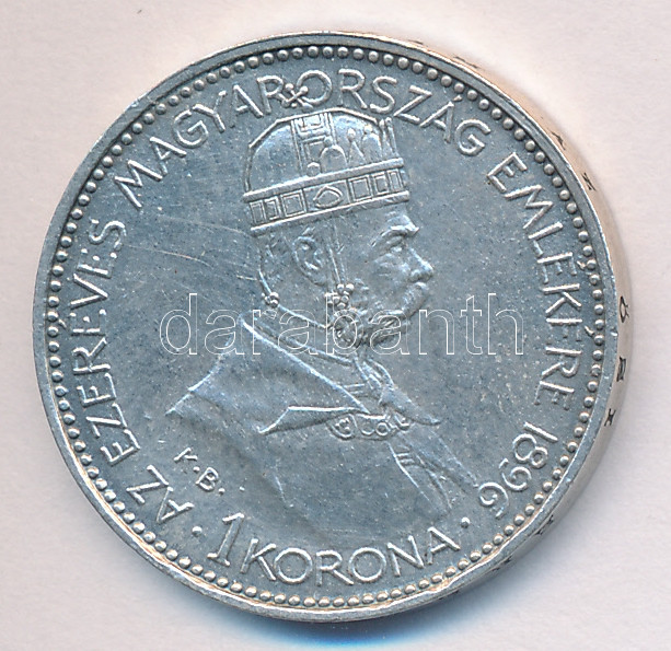 1896KB. 1K Ag "Millenium" T:2 https://www.darabanth.com/de/164-Fernauktion/164.0/Numismatik/Ungarische-Munzen~2000102/1896KB-1K-Ag-Millenium-T2~II537787