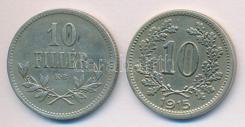 1915KB 10f + Ausztria 1915. 10h T:2 https://www.darabanth.com/de/164-Fernauktion/164.0/Numismatik/Ungarische-Munzen~2000102/1915KB-10f-plus-Ausztria-1915-10h-T2~II538261