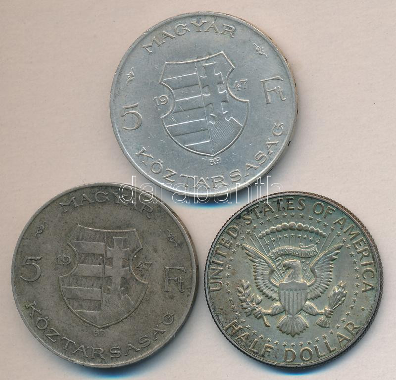 1947. 5FT Ag "Kossuth" (3x) T:3 https://www.darabanth.com/de/164-Fernauktion/164.0/Numismatik/Ungarische-Munzen~2000102/1947-5FT-Ag-Kossuth-3x-T3~II537584