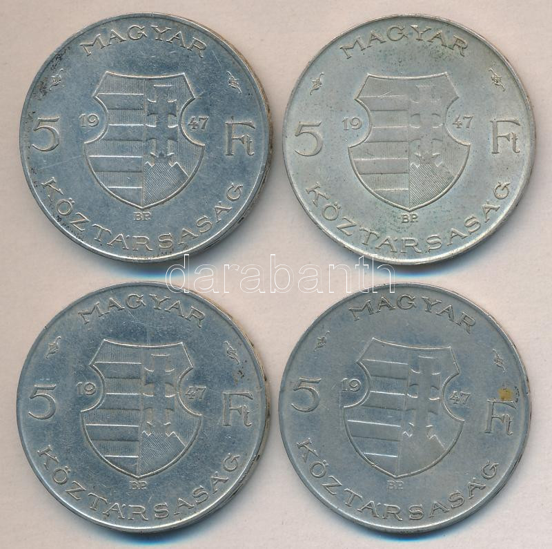 1947. 5FT Ag "Kossuth" (4x) T:2-,3 https://www.darabanth.com/de/164-Fernauktion/164.0/Numismatik/Ungarische-Munzen~2000102/1947-5FT-Ag-Kossuth-4x-T2-3-3Cbr3E~II542723