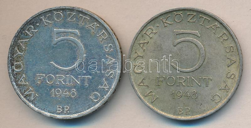 Beschreibung: 1948. 5Ft "Petőfi" Ag utánveret, a peremirat betűi nagyobbak T:PP + 1948. 5Ft "Petőfi" Ag támpéldány T:2 ph.