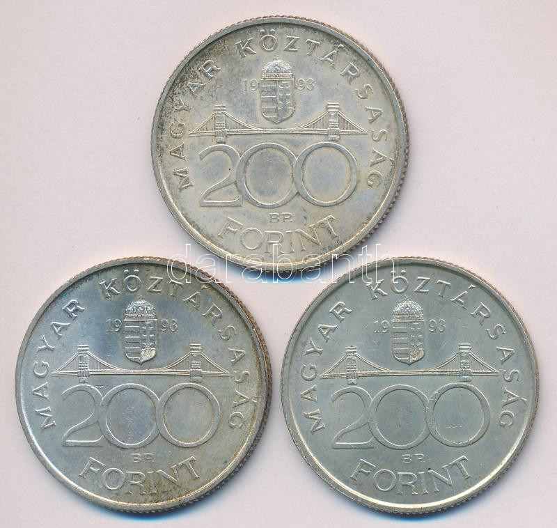 Beschreibung: 1993. 200Ft Ag "MNB" (3x) T:2
