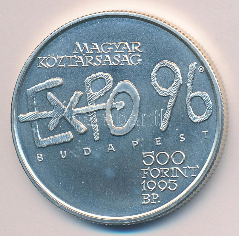 1993. 500Ft Ag "Expo 96" T:BU https://www.darabanth.com/de/164-Fernauktion/164.0/Numismatik/Ungarische-Munzen~2000102/1993-500Ft-Ag-Expo-96-TBU~II536637