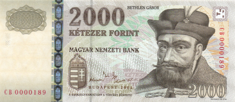 2004. 2000Ft "CB 0000189" T:I https://www.darabanth.com/de/164-Fernauktion/164.0/Numismatik/Ungarische-banknoten~2000101/2004-2000Ft-CB-0000189-TI~II537727