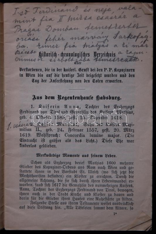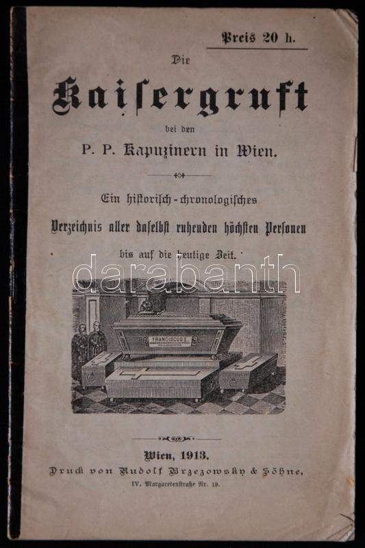 Beschreibung: Die Kaisergruft bei den P. P. kapuzinern in Wien, Wien, Druck von Rudolf Brzezomskn & Söhne, 1913, A Habsburg családi kripta története német nyelven