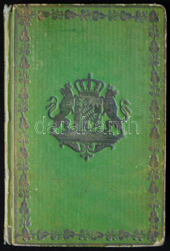 Gold embossed paper cover with the coat of arms of the Kingdom of Bavaria, etching on title page, hand writing with owner's signature and the dry seal of Maria Hyacintha Freiin v. Gumppenberg on flyleaf. In good condition with injuries on binding