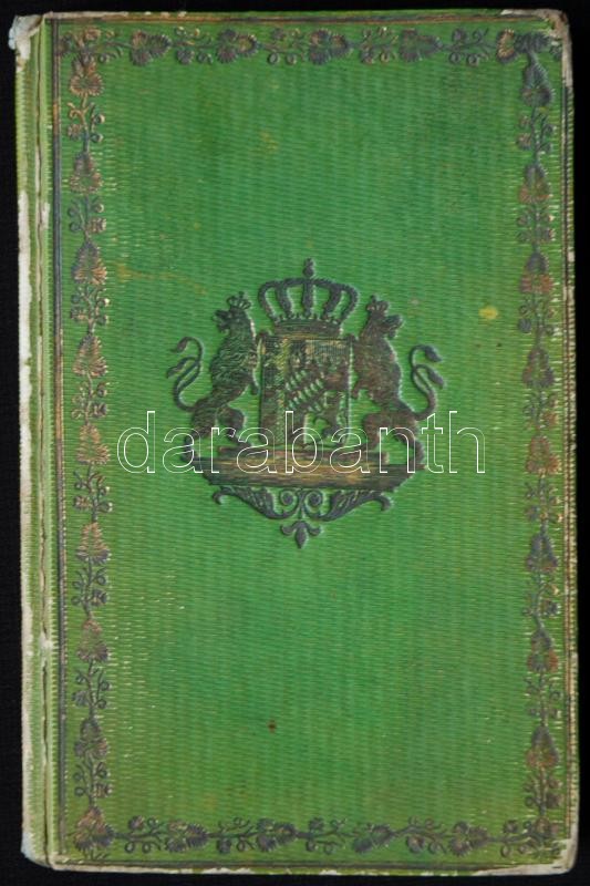 Gold embossed paper cover with the coat of arms of the Kingdom of Bavaria, etching on title page, hand writing with owner's signature and the dry seal of Maria Hyacintha Freiin v. Gumppenberg on flyleaf. In good condition with injuries on binding