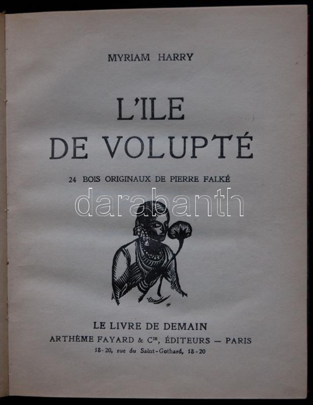 Myriam Harry: L'ile de volupté. 24 bois originaux de Pierre Falké. Paris, é. n., Arthéme Fayard & Cie. Kiadói félvászon kötésben, fametszet illusztrációkkal /