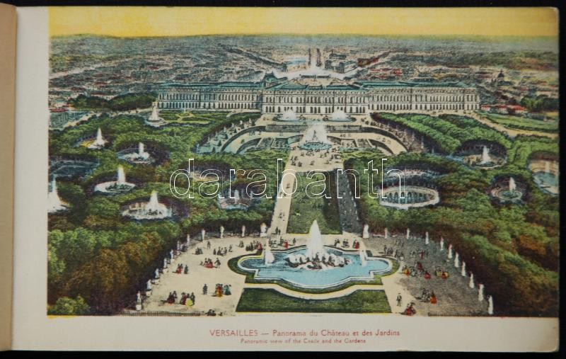 Versailles et les Trianons (Album artistique). H.n., é.n. Kétnyelvű leporellóalbum színes nyomatokkal, festett, aranyozott kiadói papírkötésben (kissé megviselt) /