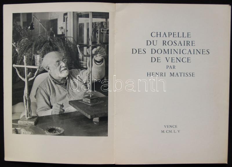 Chapelle du Rosaire des Dominicaines de Vence par Henri Matisse. Vence, 1955. Képesalbum fekete-fehér fotókkal kiadói, lithográfiával díszített papírkötésben, jó állapotban /