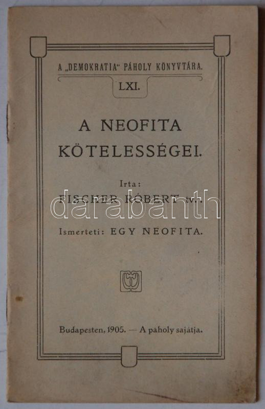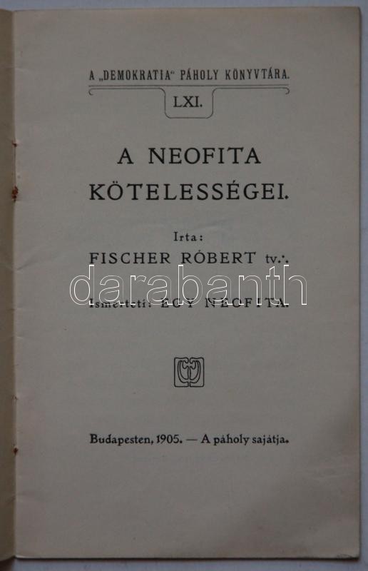 Beschreibung: Fischer Róbert: A neofita kötelességei. Bp., 1905. Demokratia páholy. 1904.