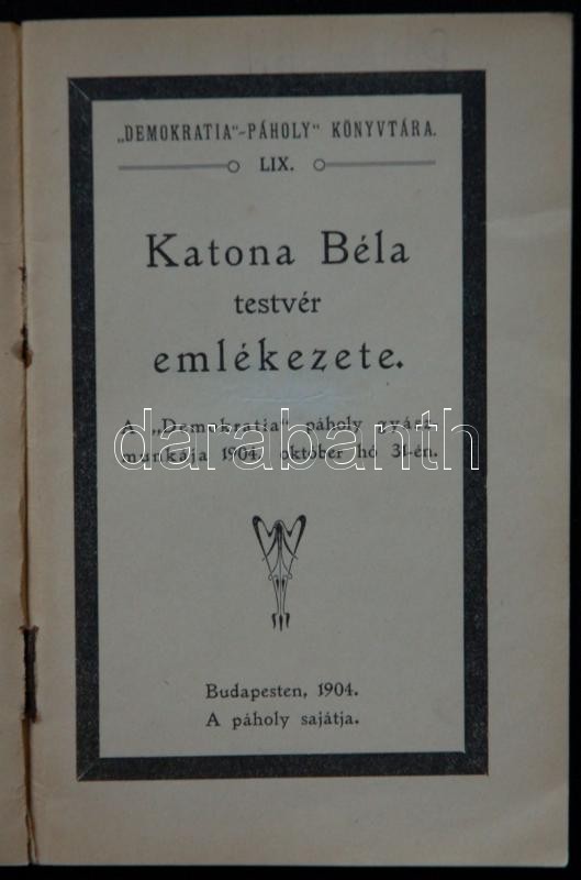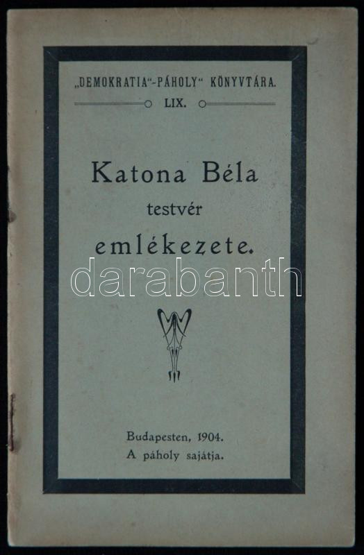 Szabadkőművesség: Katona Béla testvér emlékezete. Bp., 1904. Demokrati... https://www.darabanth.com/de/165-Fernauktion/165.0/Andere-Sammelgebiete/Bucher-Freimauer~900034/Szabadkomuvesseg-Katona-Bela-testver-emlekezete-Bp-1904-Demokratia-paholy-40p~II548677
