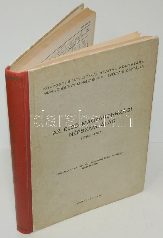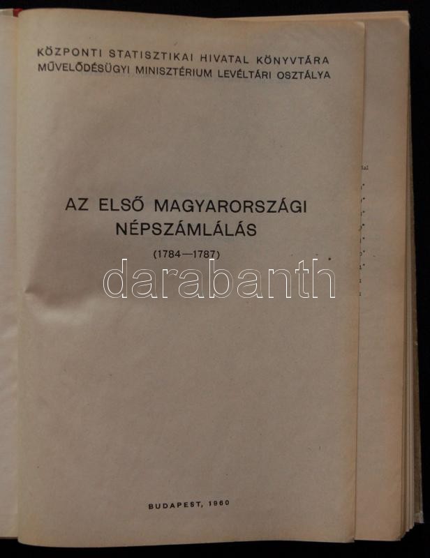 Az első magyarországi népszámlálás (1784-1787). Bp., 1960, Központi Statisztikai Hivatal Könyvtára-Művelődésügyi Minisztérium Levéltári Osztálya. Félvászon kötésben